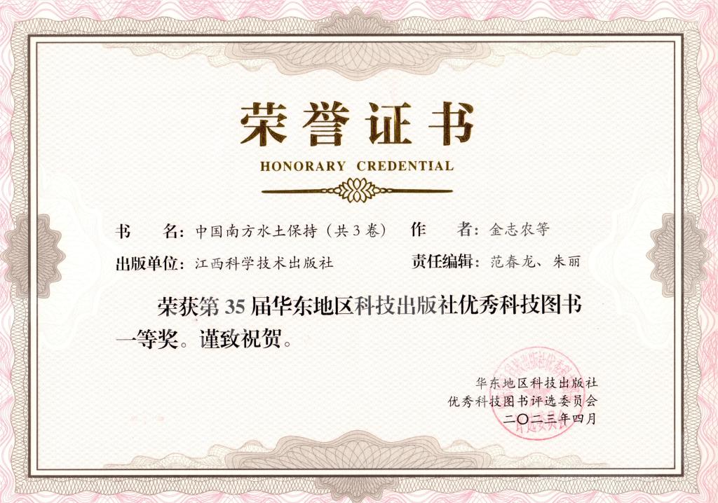 日前,第三十四届、第三十五届华东地区科技出版社优秀科技图书评选会在山东曲阜圆满落幕。由我校南方水土保持研究会牵头组织编写完成,原我校党委书记金志农研究员任主编的《中国南方水土保持》丛书(三卷本)荣获华东地区科技出版社优秀科技图书一等奖。