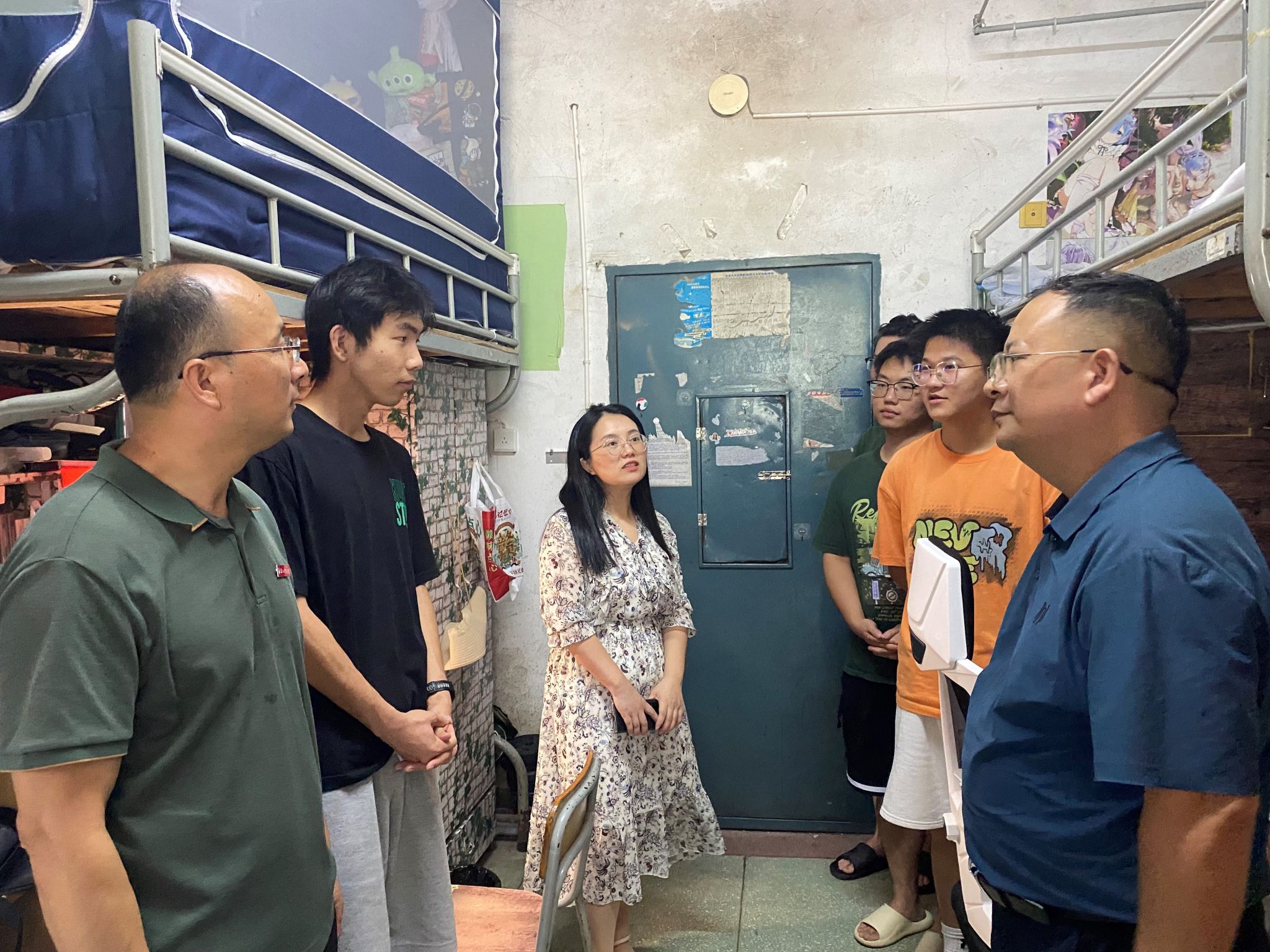 7月12日,水土保持学院党委书记曹庆、流域生态智能监测与综合治理江西省重点实验室主任黄荣珍、党委副书记宋友根在辅导员陪同下深入学生宿舍,亲切看望暑期留校学生。