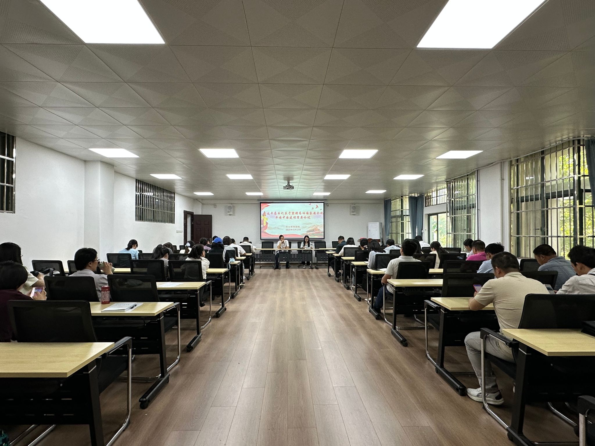 5 月 13 日下午,水土保持学院组织全体教职工在逸夫楼 B210 学习习近平总书记关于坚持总体国家安全观、平安中国建设的重要论述。此次会议由学院党委书记曹庆主持,全体教职工参加。