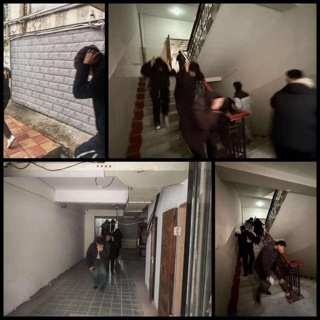 本次演练重点引导学生熟悉应急疏散路径和处置方法,演练模拟真实发生场景。随着“地震警报”信号响起,师生根据地震标准求生姿势,将身体尽量蜷曲缩小,头尽量向胸靠拢,双手交叉放于脖后,保护头部和颈部,等待逃生时机,快速有序地逃离公寓;在消防应急疏散演练中,全体师生捂住口鼻,低头、俯身、快步,按照预定逃生路线有序疏散。整个过程中,各楼层及关键通道引导得力,秩序井然,未发生任何推挤、踩踏情况。