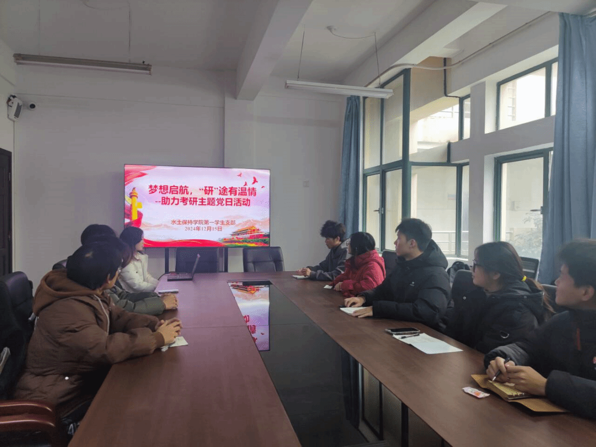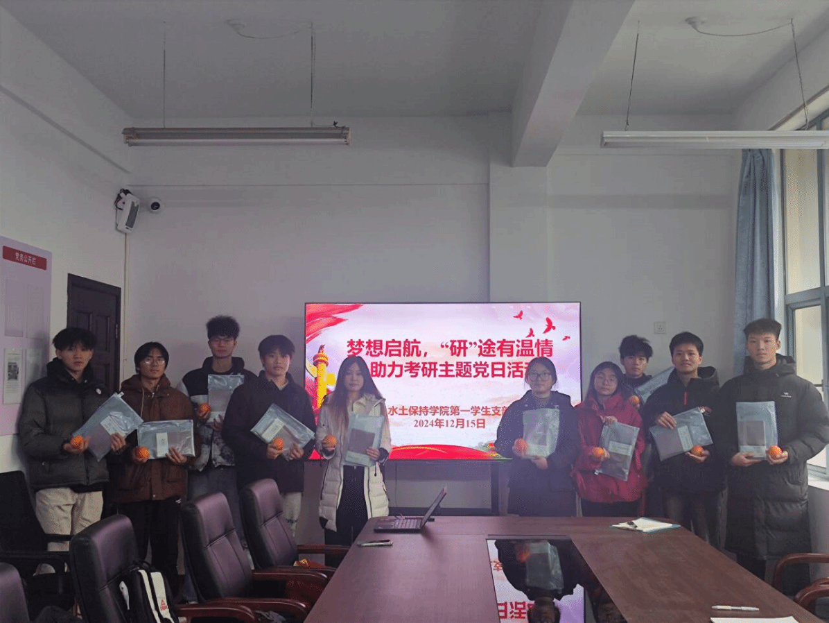 12月15日,水土保持学院第一学生党支部在水利逸夫楼A226开展“梦想启航,研’途有温情”助力考研主题党日活动,支部全体党员同志参加活动,为学院寒冬中拼搏的考研学子们点亮一盏温暖的奋进之灯。
