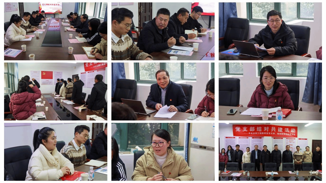 为进一步强化党建引领作用,加强党支部交流、融合,实现优势互补、共同提升,12月30日下午,水土保持学院农业水利工程教研室党支部和继续教育学院党支部在逸夫楼A226开展“党支部结对共建”主题党日活动。