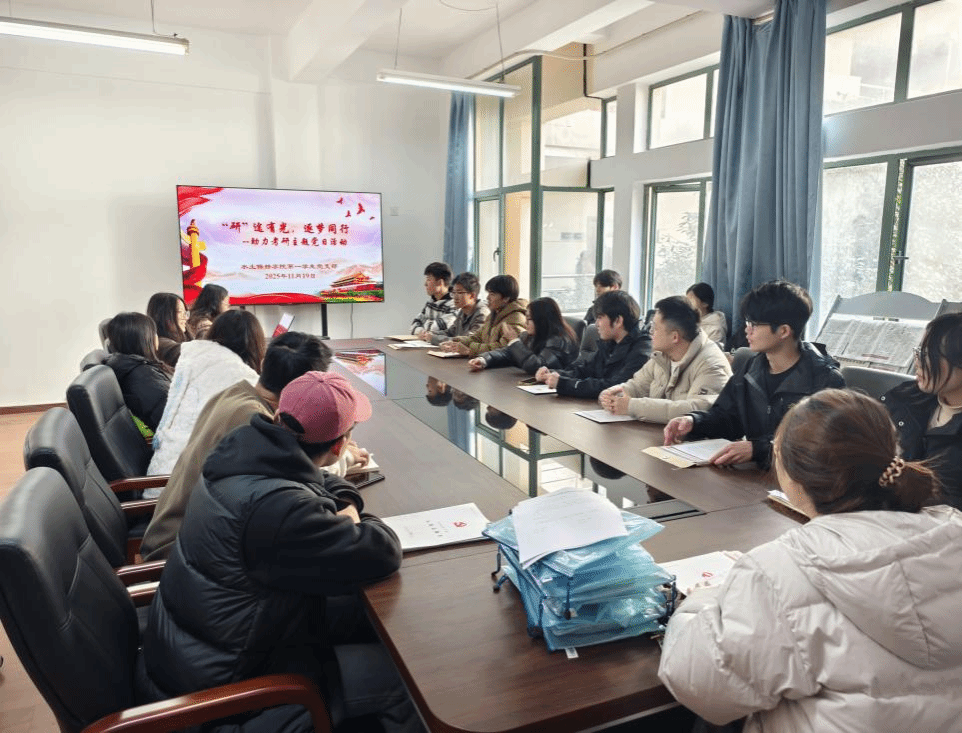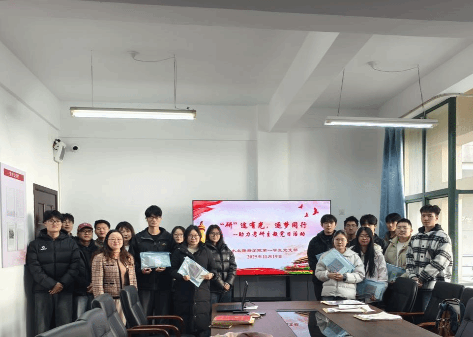 11月29日,水土保持学院第一学生党支部在逸夫楼A226开展“‘研’途有光,逐梦同行”助力考研主题党日活动,以实际行动为寒冬中全力冲刺的考研学子注入温暖与力量。