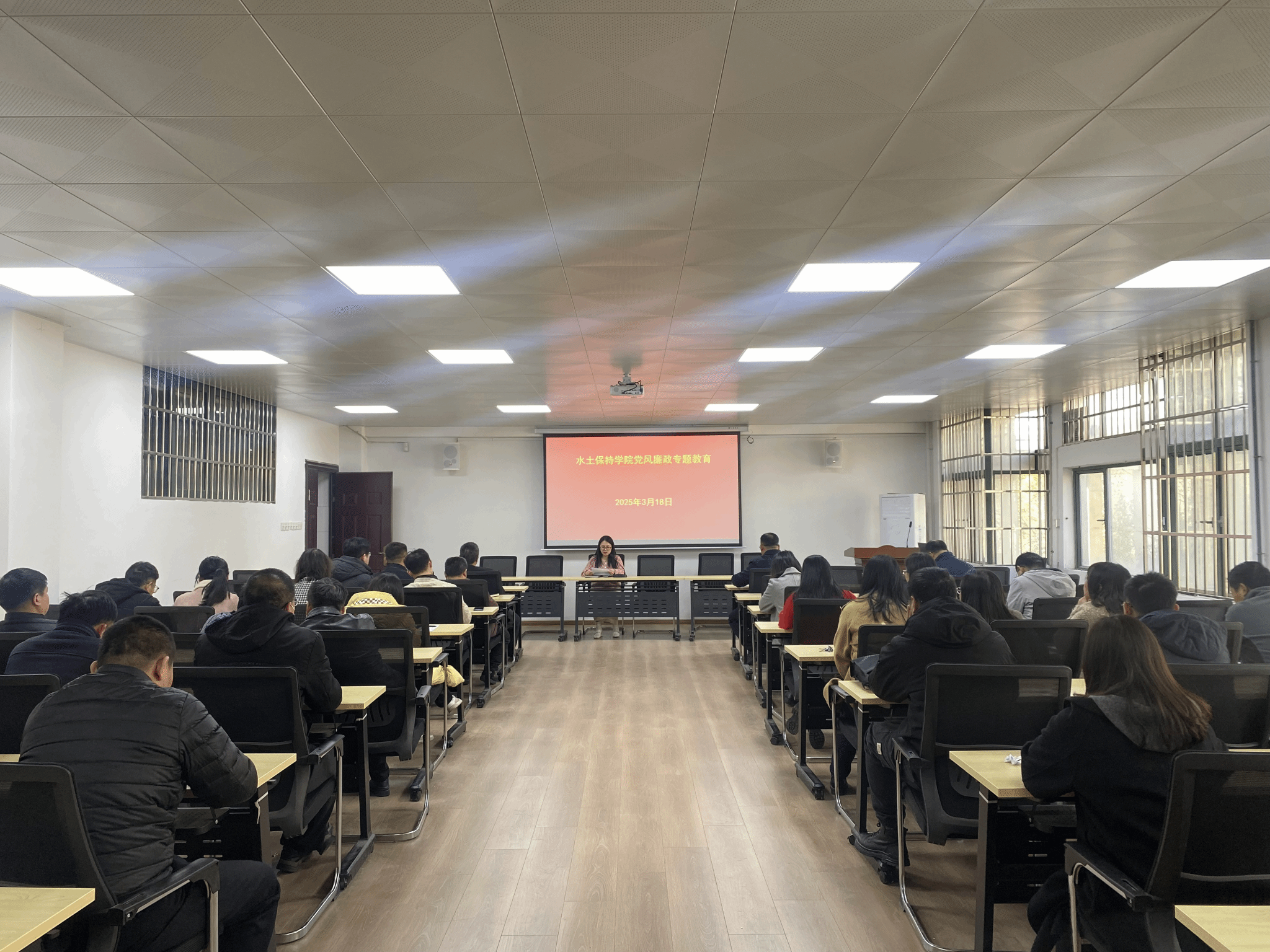 3月18日下午,水土保持学院在逸夫水利楼B210开展党风廉政专题教育。