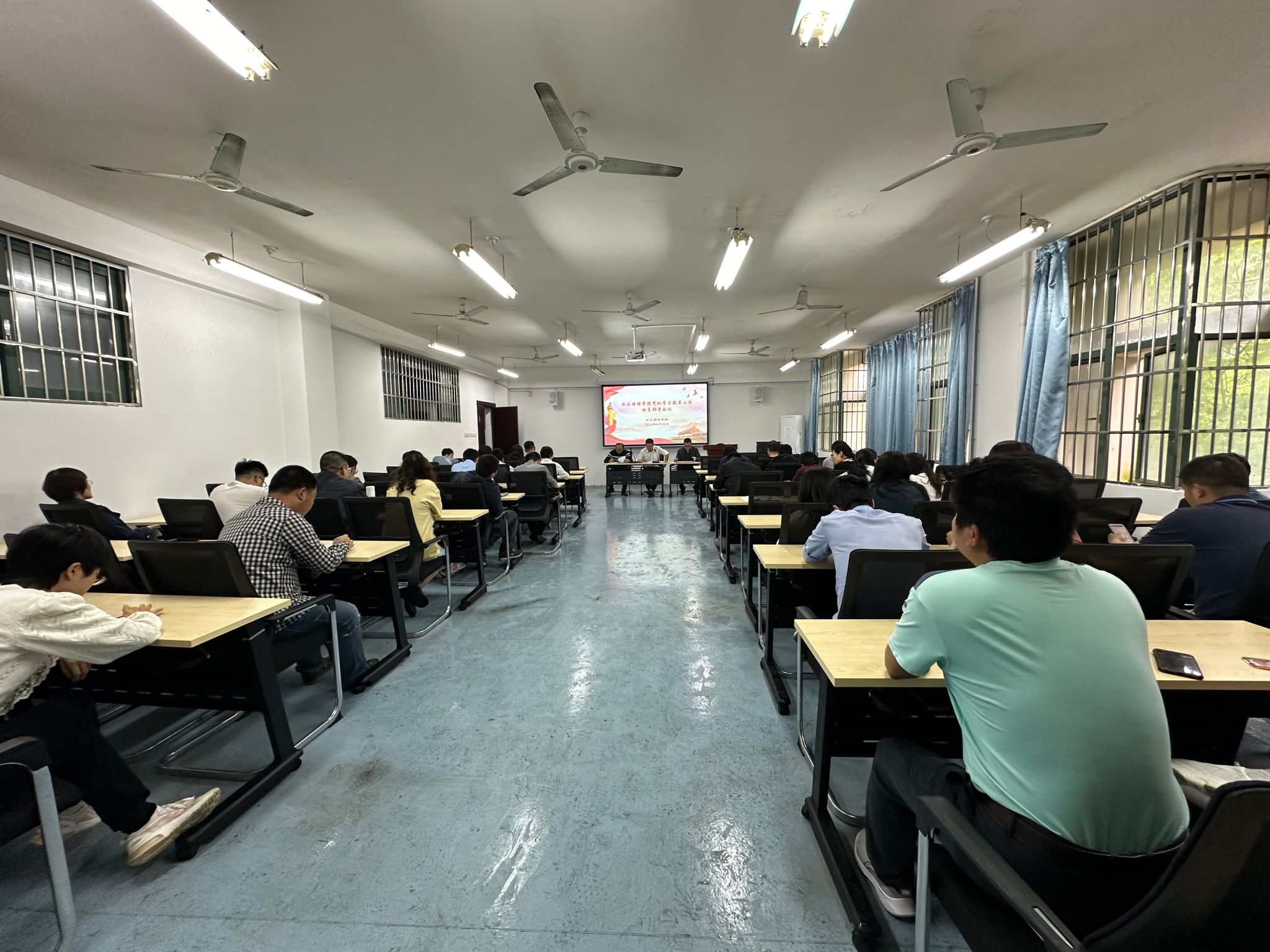 4月16日下午,水土保持学院在逸夫楼B210会议室召开党纪学习教育动员部署会,学习贯彻习近平总书记关于党纪学习教育的重要讲话和重要指示精神,落实党中央、省委和学校关于开展党纪学习教育的决策部署,启动学党纪学习教育工作。会议由学院党委副书记、副院长赵新宇主持。副院长鲁向晖、流域生态智能监测与综合治理江西省重点实验室专职副主任黄荣珍、学院全体党员参会