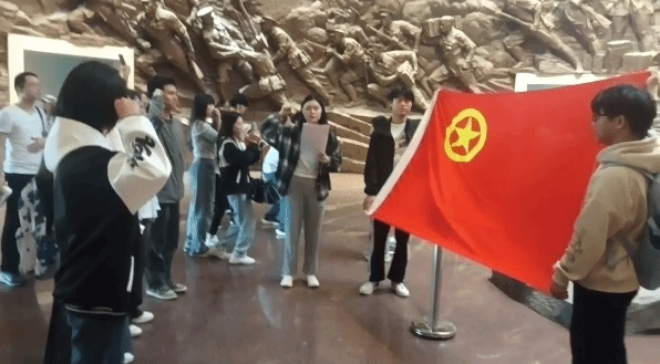 馆内展示了关于南昌八一起义的相关图片、文献、实物等史料,学生们通过参观馆内文化展厅和陈列的历史文物,了解了南昌起义的历史背景、策划过程和影响力等。参观结束后,学生们来到纪念馆正中心的石破天惊雕塑前,集体进行开展了入团宣誓仪式。