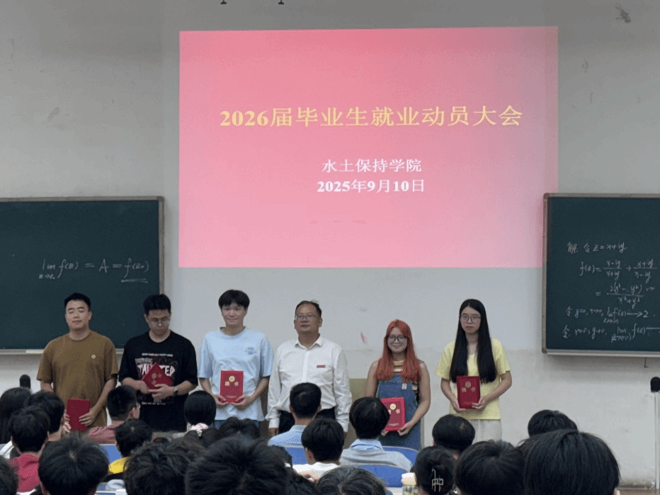 9月10日下午,水土保持学院在北教学楼C103召开2026届毕业生就业动员大会,旨在做实就业服务、激发学生自主就业积极性。学院党委副书记宋友根、学工办主任谢应兵、毕业班全体班主任及毕业生参会。