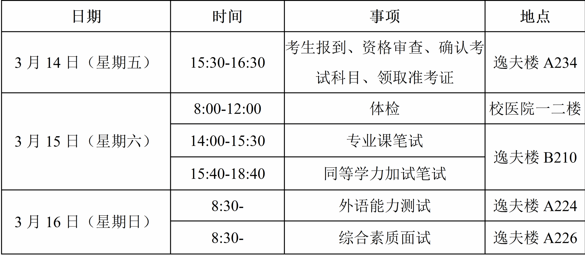 4.体检:考生在我校医院体检。录取考生入学时须参加学校统一组织的体检。